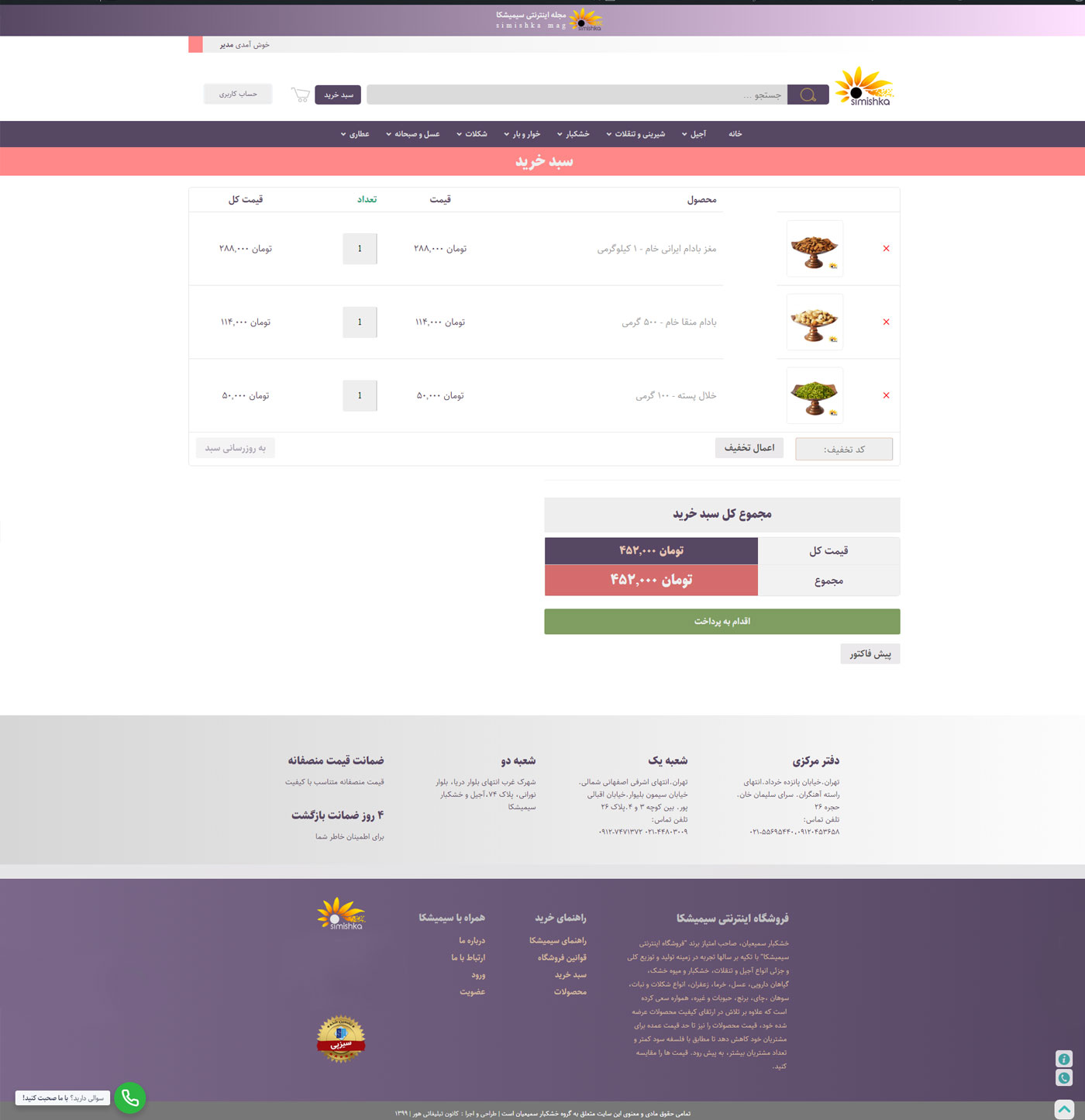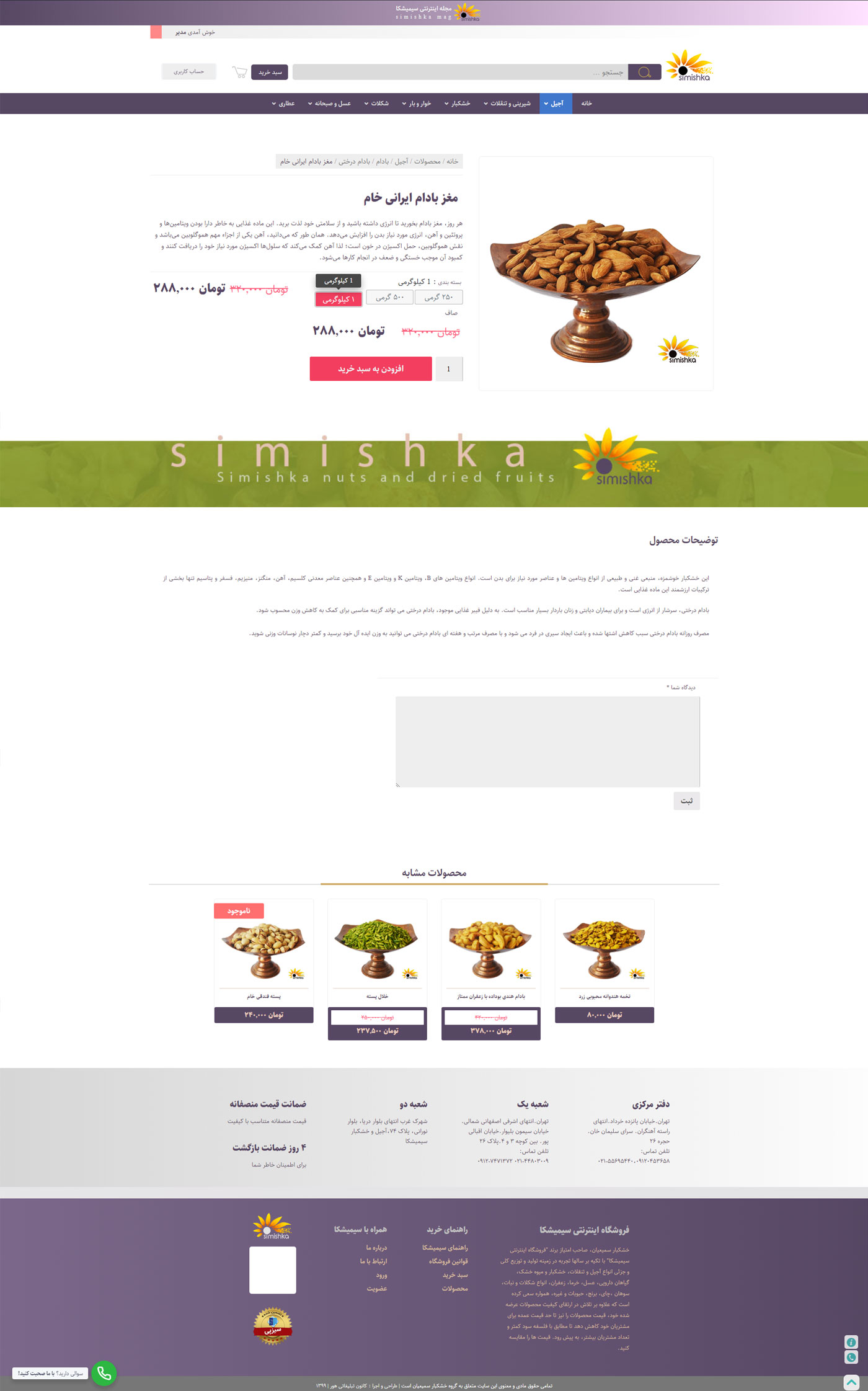 از سال ۱۳۹۷، آجیل وخشکبار سمیعیان با برنامه ریزی و فراهم آوری حرفه ای مقدمات کار برای ایجاد بازاری شفاف در بستر فضای اینترنت کوشیده است. سایت “فروشگاه اینترنتی سیمیشکا”، حاصل این برنامه ریزی و تلاش بوده است. در واقع، خشکبار سمیعیان در بستر سیمیشکا می کوشد که فعالیتهای خود را در این حوزه علاوه بر جنبه ادامه دار سنتی، به بستر وب نیز گسترش دهد تا سهولت دریافت اطلاعات درست و مفید و مقایسه و خرید انواع کالای این حوزه تخصصی را برای مشتریان عزیز خود فراهم آورد.بطور کلی حوزه اصلی فعالیت های خشکبار سمیعیان در بخش “عرضه عمده” تولیدات خود و سایر تولیدکنندگان است. بنا بر این خرید محصولات در این گروه، با حجم عمده و البته با قیمت عمده انجام می پذیرد. خشکبار سمیعیان سعی کرده است قسمت کوچکی از محصولات تولیدی و یا خریداری شده با قیمت عمده را برای فروش خرده در نظر بگیرد. فروش “خرده” محصولات، در قالب فروشگاه اینترنتی سیمیشکا، اتفاق می افتد تا با حذف واسطه ها، محصولات قابل ارائه با کیفیت های مختلف، با قیمت هایی نزدیک به فروش عمده و البته به مراتب کمتر از فروشگاه های خرده فروشی سطح شهرها، به دست مصرف کننده نهایی برسد.